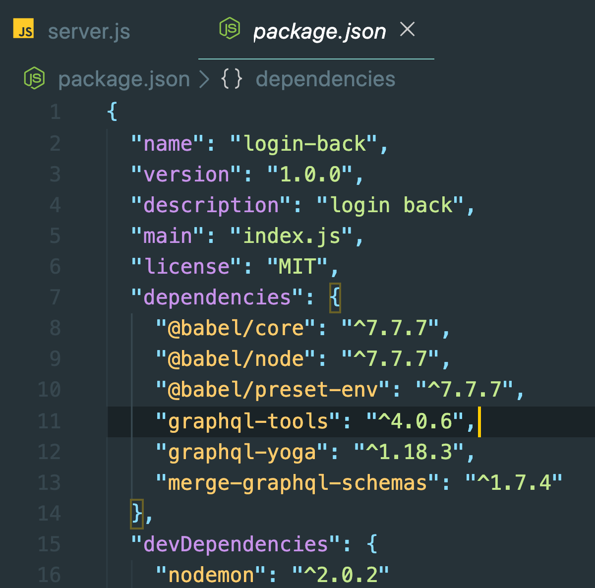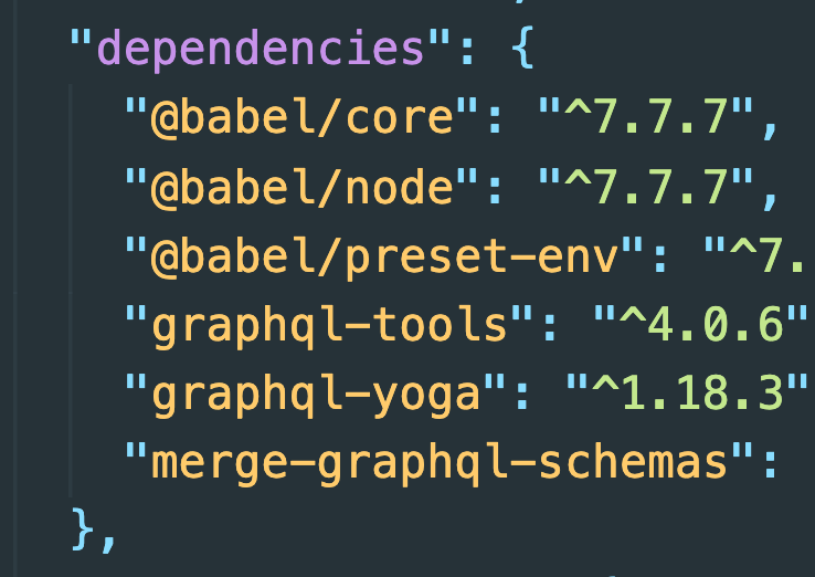 계속 패키지를 추가해야하지만 일단은 graphql 관련(아래 3개)과 최신자바스크립트를 해석(babel)하는 패키지를 설치한다