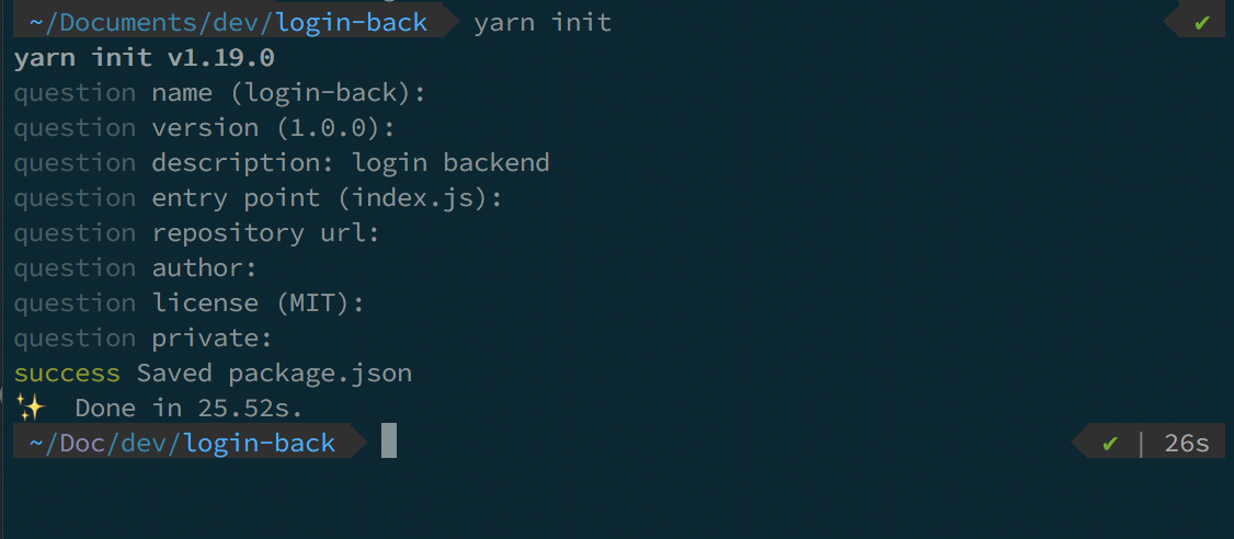 이제 다시 폴더로 돌아와서 yarn init 이나 npm init을 한다 그냥 싹 다 enter