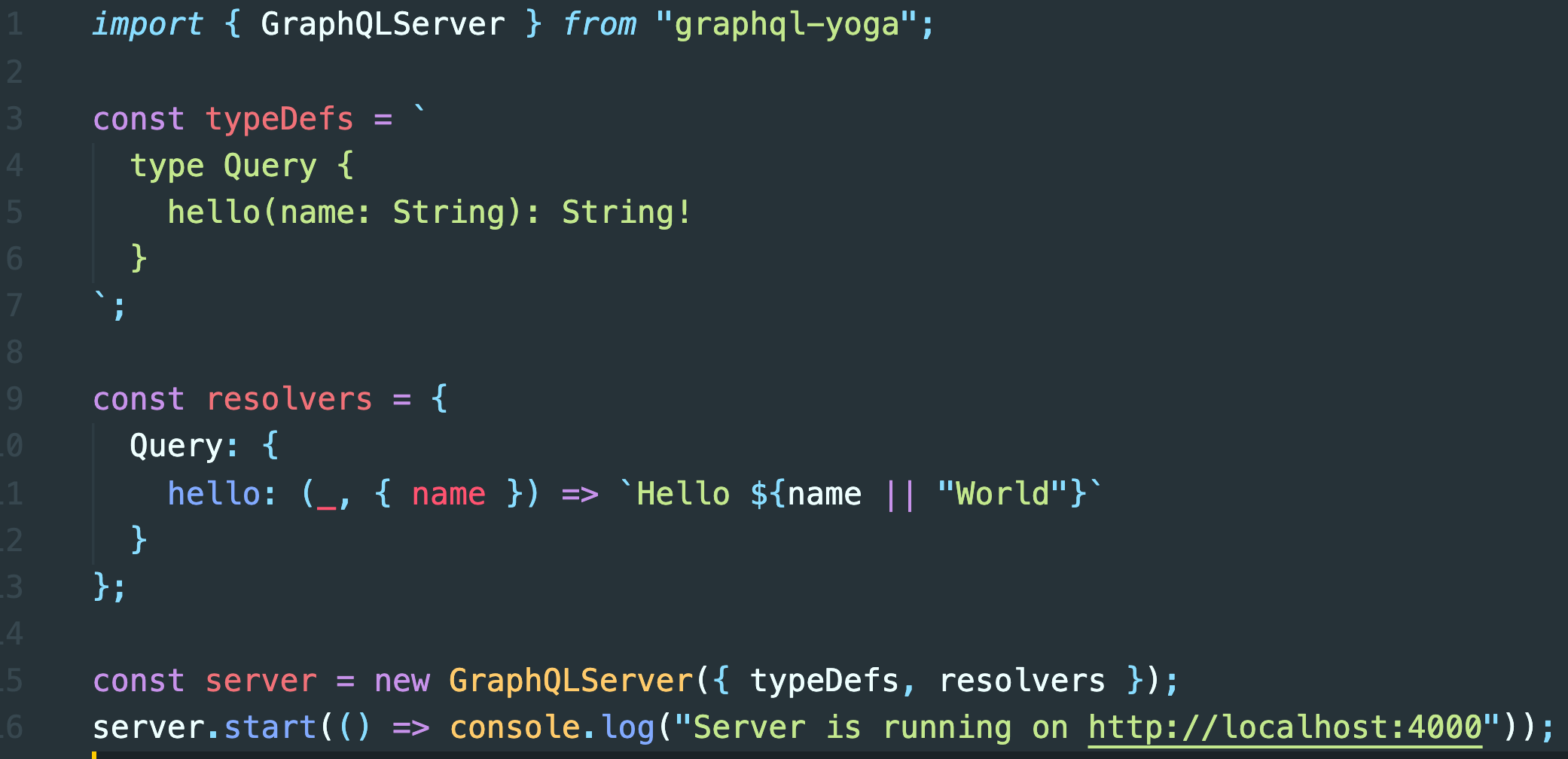 설치했던 graphql-yoga 에서 GraphQLServer를 가져와서 만들어 주고 server.start 만 하는 기본서버다